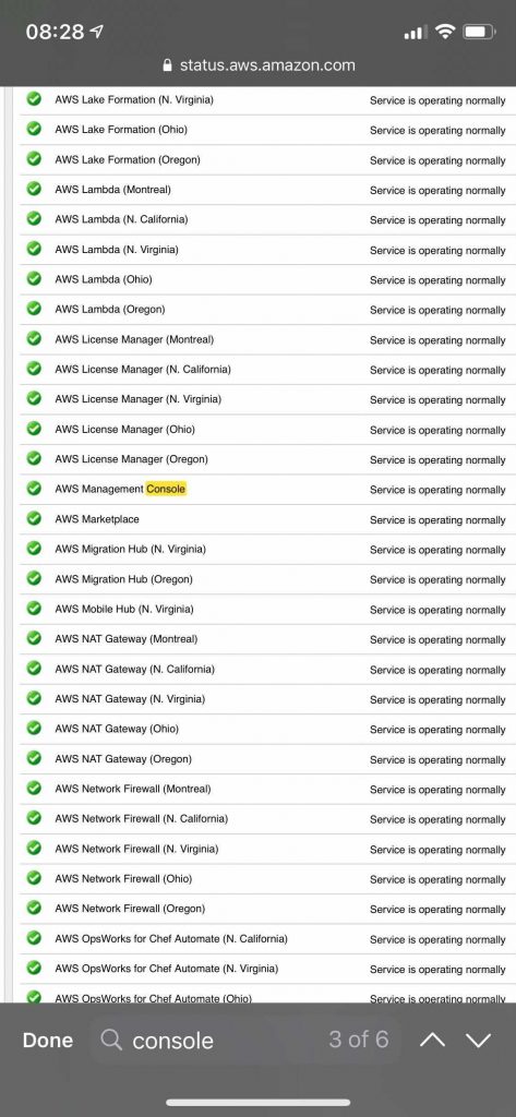 seems no one can log into the console https://console.aws.amazon.com/console/home We're seeing: 504 Gateway Time-out Comment if you learn why or hear an update Their status page claims all is up..