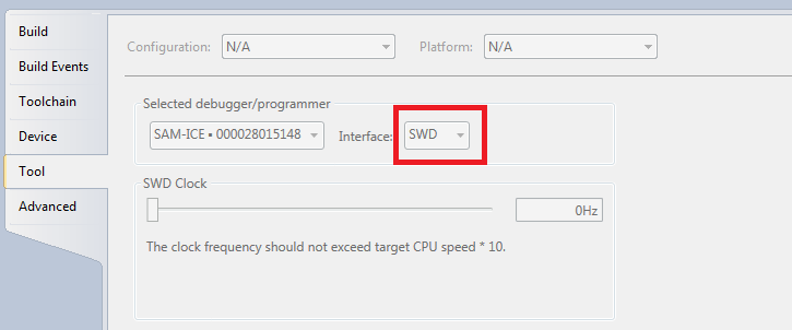 To fix the the issue, select SWD from the drop down.